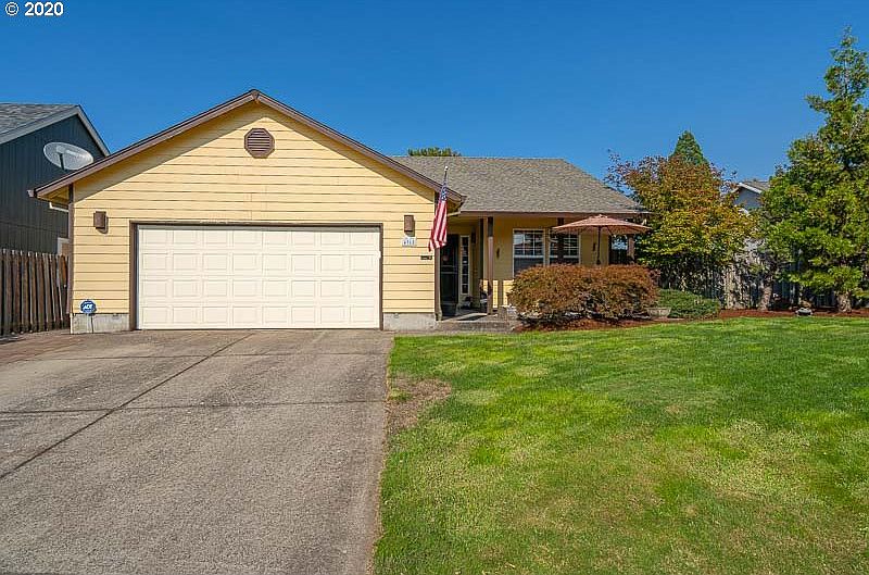 The entry to this 3-bed, 2-bath single-level home opens to the living room/dining room with vaulted ceilings, gas fireplace and plant shelf. Corian countertops, laminate floors, recessed lighting and a breakfast nook are all found in the kitchen, which is located next to the family room. Down the hall are 3 bedrooms. The master has vaulted ceilings and an ensuite bath with large shower and walk-in closet. Backyard is fully fenced with a patio and gazebo. Attached 2 car garage, and UG sprinklers.