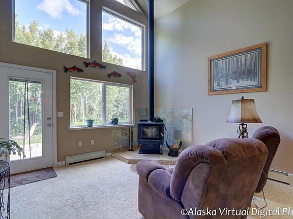 Use Gunflint off Meadow Lakes Lp to show. Airstrip, 5 acres of privacy, views, and room to add a hangar of any size. Home is in excellent shape, 18' ceilings in the living room, mstr on the main floor with 14' ceilings. Hickory cabinets, pantry, generous counterspace. 2 Living rooms with a wall of windows, blaze king, new gas boiler, trex, gutters, vinyl siding, fire pit, landscaped yard. Easy access to numerous lakes, close to the Little Su, Razr or wheeler right out your back door and access Baldy and beyond.
