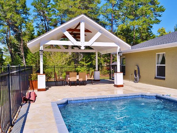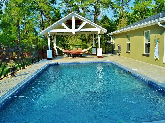 FOR SALE By OWNER: Custom St. Charles model secluded with no neighbors on the back. Close proximity to Florida Greenway Trail Systems, great schools and plenty of shopping. Four bedrooms, two and a half baths, two car side entry garage. Formal dining room, with cathedral ceilings. Spacious living room and TV room. Big and bright master bedroom with sitting area, his and hers walking closet with pool access. Master bathroom has a garden tub, double sinks and walking shower. Huge kitchen featuring custom oversize maple wood cabinets, with crown moldings, large island with access in both sides. Stainless Steel appliances and a large walk in pantry. Laundry room with utility sink, and closet. Lots of room to entertain in the large and beautiful pool cabana that has cathedral ceilings and outdoor fan. Child proof aluminum rod iron style fence around perimeter of pool deck with two gates. Three ways to access the pool area; thru the TV room, the living room and the master bedroom. Cover lanai with fiber reinforce concrete deck with acrylic decorative coating throughout pool deck. Large tree house for the Kids. HVAC system Carrier 5 ton 16 seer installed new on 2014. Contact: 352-445-7299