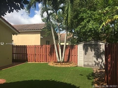 Beautiful and spacious home in guard gated community, elementary school right by entrance to the community. Walking distance to a nearby Vizcaya Park. Tiled throughout, brand new laminated floors in bedrooms; renovated kitchen with stainless steel appliances; renovated bathroom; 2 car garage; Backyard with paved patio. Lots of space for entertaining. Storage shed in the backyard. Great home for a family. Location! Close to major highways and shopping centers. Home will be repainted for a new tenant.
