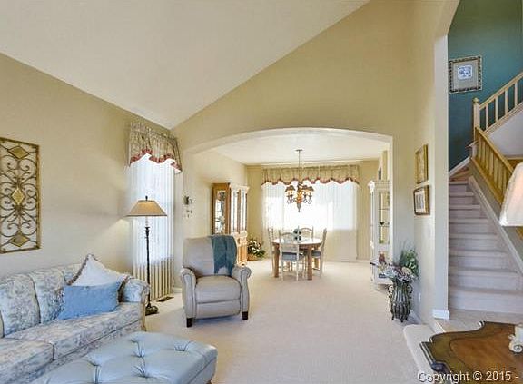 Walk up the stamped concrete walkway past the composite deck with it's metal and lighting details to enter this immaculate home. The Two story entry has tile floors and leads to the formal living room with a beautiful bay window and mountain views. The arched entry brings elegance to the spacious dining room. The kitchen features Corian counters, upgraded stainless steel appliances, recessed lighting, tile floors, tile backsplash, center island and a large eat-in area that walks out to the backyard. A three sided fireplace separates the Kitchen and Family Room. The Family room features beautiful wood floors and built-in shelving. The Main level laundry has a deep sink and built in cabinets. Upstairs the large Master Suite has a retreat with a bay window. The Master Bath has a double sink, solid surface vanity, tile flooring, oval soaking tub, custom tile shower and a walk-in closet. The upper level also has three additional spacious bedrooms that have mountain views and a full bath. The fully finished basement has a second family room with a wet bar area that has counter seating and lots of built in cabinets. The basement also has additional bonus rooms for an office and storage space that include additional built in cabinets and a desk area. The very private backyard has a large stone patio, waterfall and pond, and beautiful gardens that provide for outdoor living and entertaining! The landscaping provides privacy and flowers all summer long. The home also has a built-in surround sound system, crown molding, Karastan carpet, roman shades, upgraded lighting fixtures, is located on a cul-de-sac and directly across the street from a park with walking paths. The neighborhood includes access to a neighborhood pool, tennis courts and community activities.
