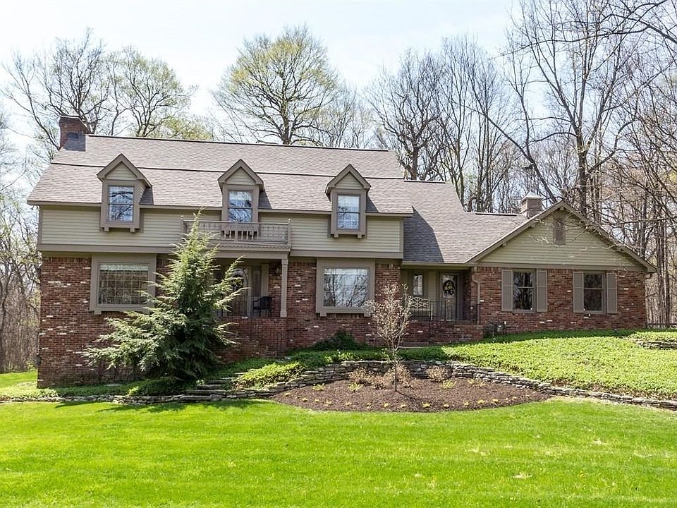 Country living within the city of Carmel. Almost 2 acre lot in Woodbrook Downs is wooded and rolling. Views of trees and the house on the hill. Has views everywhere. Estridge custom built featuring loads of hardwoods, master with office den, 2 fireplaces, sun room with great light, guest bedroom on lower level, 3 car garage. Interest in 24 acre nature preserve provides a unique opportunity for your private abode.