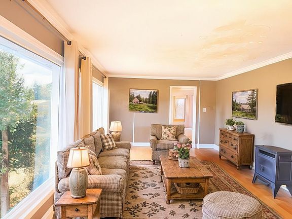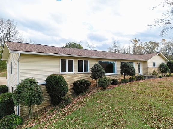 If you are looking for a home on a hill with 5-/+ acres and a view this is it. Picture windows on the front of the home captures it all. This property seems never ending with all it has to offer. Beautiful hardwood floors throughout this expansive home, two large master suites, quartz countertops in newly updated bathroom with jacuzzi tub, and large walk-in closets. Also a detached cottage/studio with a wrap around porch that could be used as an apartment, man cave, in-law suite or even for your teens. Open concept living room/kitchen with stainless appliances, in drawer microwave, gas stove, compactor, and a pantry. Main house has a solar attic blanket to reduce cost of heating and cooling and HVAC has a gas pack. WAIT! There's more... Partial basement/garage in main house & basement/garage under the studio/cottage, mechanics garage with hoist and drive over service area , tractor shed, gardening shed, and a large garden area with a waterline ran to it and a rain water tank for easy irrigation. All this plus a covered patio porch with stamped concrete on the back of home great for relaxing or entertaining. Washer and dryer and all kitchen appliances remain with the home. All wiring and roofing has been updated. They fence along the left side of the driveway does not go with the property. The driveway is an easement.