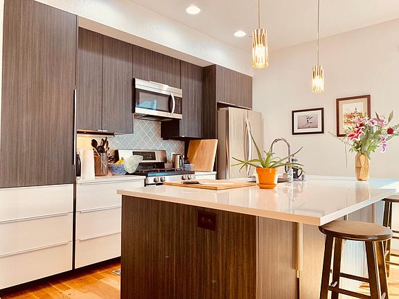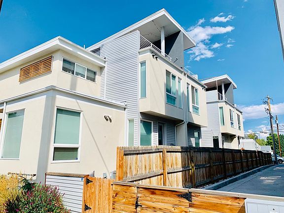 Watch video walkthrough tour at PMI Mile High dot com, Contemporary design townhouse located in the highly desired Berkeley/Regis Community featuring 2 bedrooms, 2.5 baths, 1319 Sq Ft with 1 car detached garage, available for rent. This home has a beautiful great room with an open feel including 9-foot ceilings, large windows providing great natural lighting, beautiful plank style wood flooring, custom blinds and modern iron handrail. Stunning kitchen offers 42" exotic Zebrawood veneer cabinets on the top with high polished white painted cabinets on the bottom, white quartz counter-tops, back splash, stainless steel appliances and large island/breakfast bar with access to private deck with small fenced in yard! On the second level you will enjoy 2 gorgeous master suites both with low pile textured carpet, private baths with tile flooring and quartz counter tops plus spacious closets in both. The loft provides a dedicated tech area leading to a private rooftop deck great for entertaining or simply to enjoy the fresh air! Washer/Dryer and A/C included. This home is in a prime location across the street from Regis University, surrounded by great restaurants, bars and nightlife yet within minutes of Downtown Denver or Boulder, accessible by any of the major interstates including I-25, I-36, I-76, I-70 and I-270. Property is shown by appointment only. Background checks cover criminal, credit, and eviction. Must provide a valid ID and 2 most recent pay stubs to verify income. Security deposit equal to one month's rent, first month's rent, and any other applicable fees will be required to be paid in full within 24 hours of signing the lease agreement. Contingent to your credit score, an additional Security Deposit will be required for scores under 650.com/application-policy $40 non-refundable application fee required for anyone over the age of 18 planning to occupy the property. All utilities must be transferred into your name starting when the lease begins. Tenant paid utilities include: Gas, electric, water, trash and sewer.