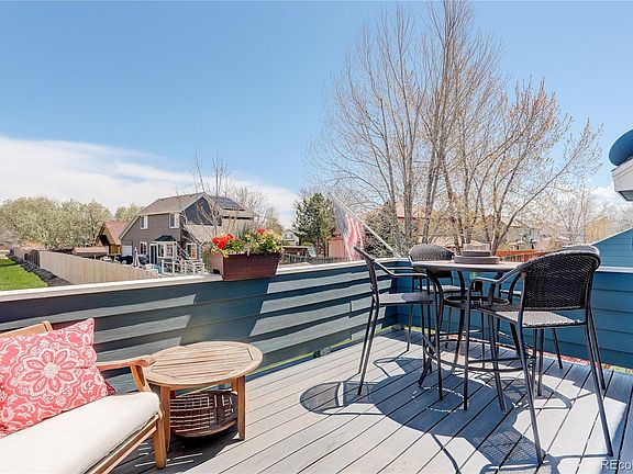 Great location: close to C470, clean/friendly/gated community with pool and community center for parties, wide 2-car attached garage with 2 additional parking space next to front door, vaulted-ceilings with open floorplan, backs to an area perfect for dogs or play area, spacious deck, tile kitchen floor and granite counter tops, upgraded bathrooms, new attic fan, walk-in closet, basement storage area.
