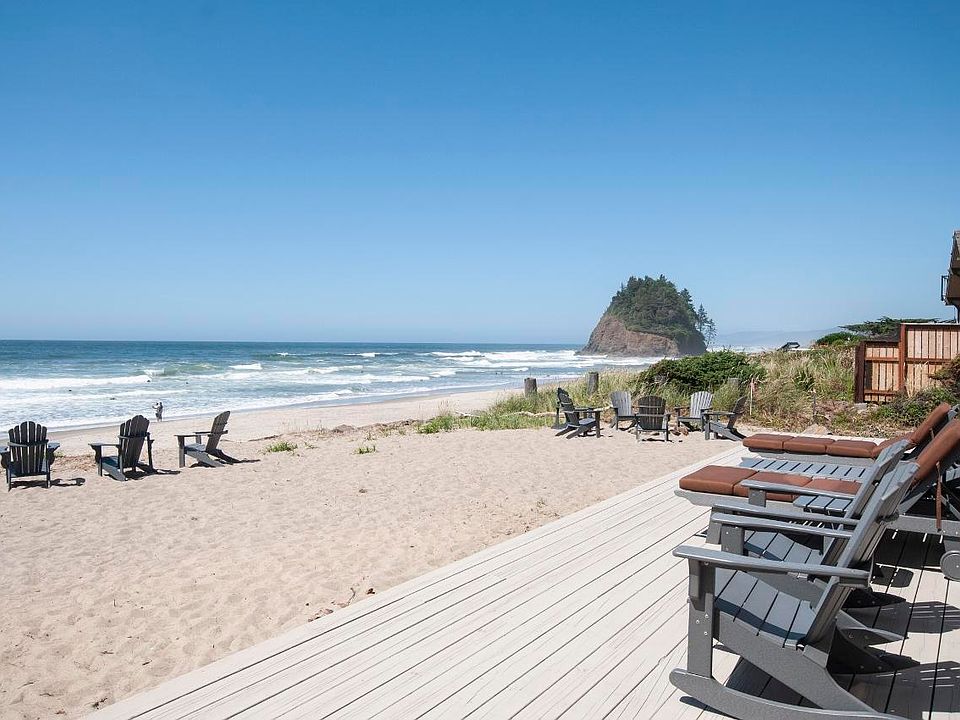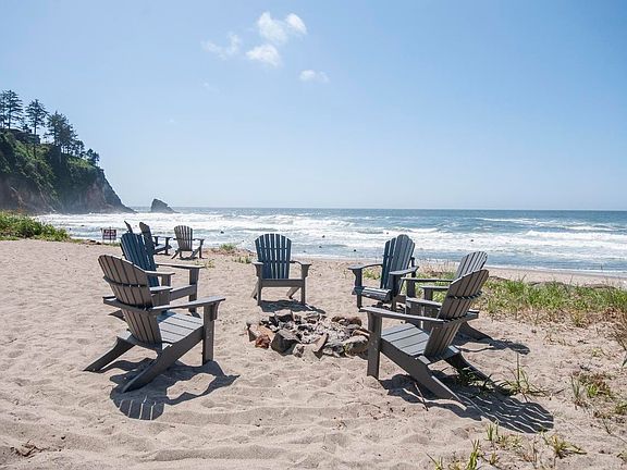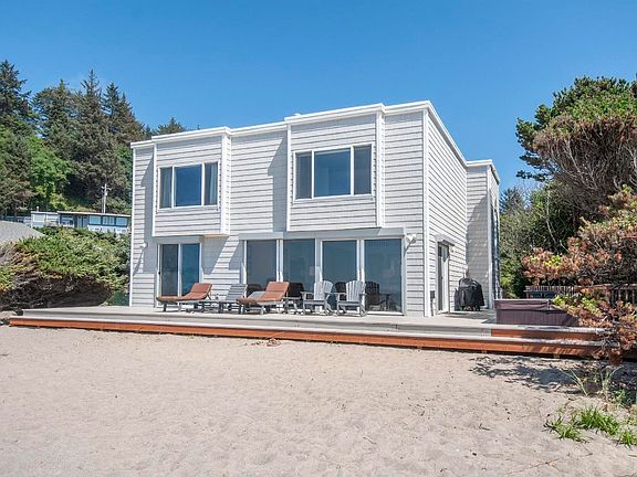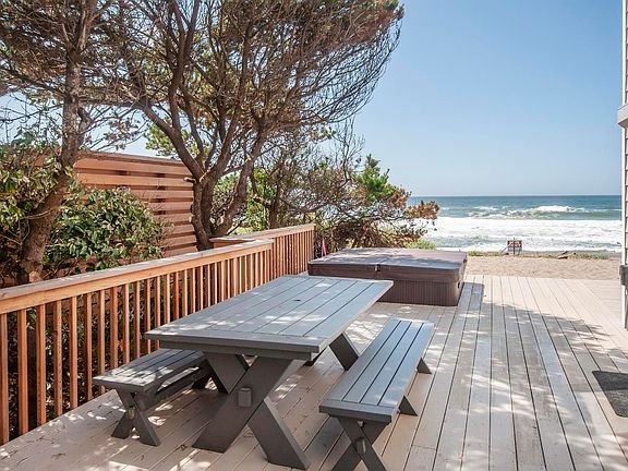 Oceanfront, 6 bedroom/4 bathroom home with expansive views of the Pacific Ocean and Proposal Rock, direct beach access and recent custom high end upgrades throughout. Spacious ocean view deck with hot tub and a large sandy back yard with fire pit. Two ocean view master suites w/propane fireplaces, light and bright living room, media room, laundry on both levels and tons of storage.Low maintenance landscaping with plenty of parking! Currently a successful vacation rental. Just 15 minutes to Lincoln City or Pacific City.