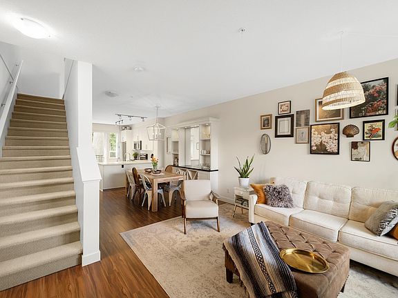 This stunning 1,359 sqft 3 bed/2.5 bath home at Winchester is sure to impress. As a former showhome, this unit boasts premium features & finishes throughout. The main floor features an open layout, with a spacious living room that flows seamlessly into the dinning area & kitchen. The bright renovated kitchen offers s/s appliances, quartz countertops, lots of cabinet space and opens up onto a private patio overlooking greenspace. Wake up to the same lush green views from your primary bedroom upstairs incl. a walk-in closet and ensuite w/double sinks. Two additional bedrms and a full bath round up the upper floor. Located in the sought after neighbourhood of Murrayville, this home is just steps away from shopping, schools, and all amenities you need. Don't miss out, make this your new home!
