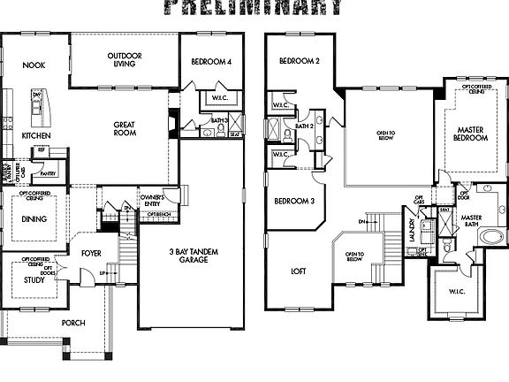 The inviting porch leads to an open 2-story foyer with a study and dining room. A large kitchen, nook and two-story great room provide plenty of family space. Interior finishes include granite kitchen countertops, painted maple cabinets and hardwood.