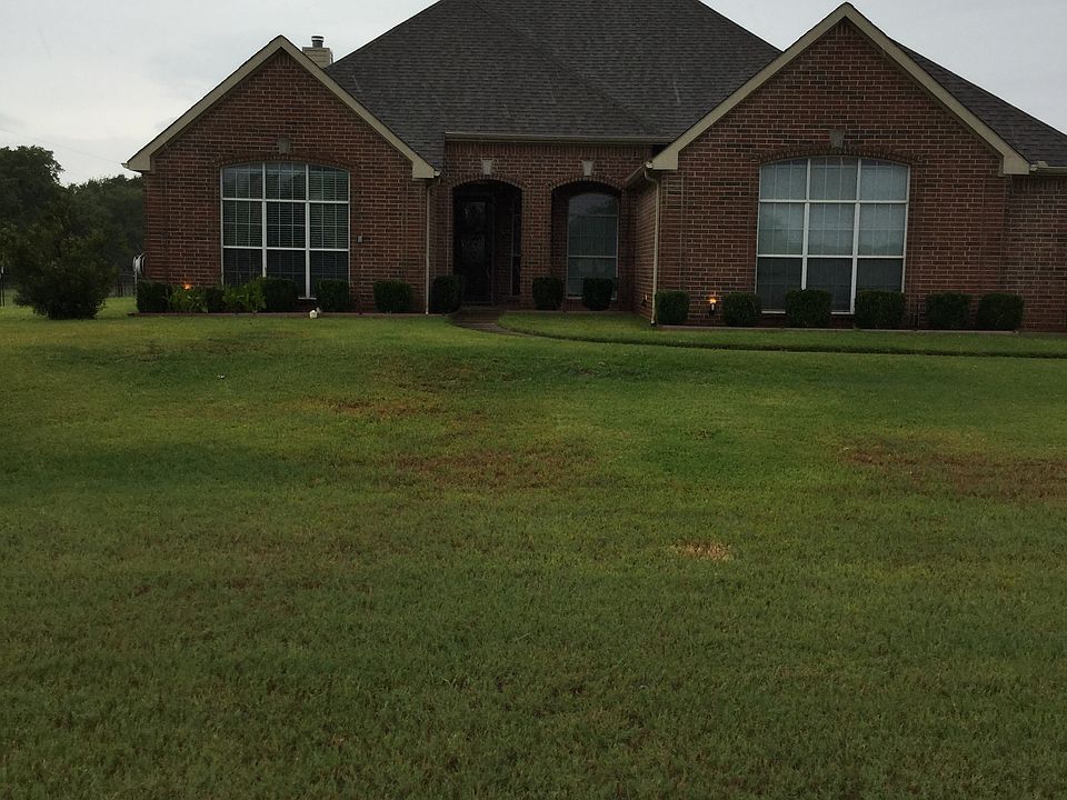 Beautiful brick home with 4 bedrooms, 2 baths, a study and 3 car garage sitting on 2.25 acres. Home includes open floor plan, split master suite, 14+ ft ceilings and a wood burning fireplace. Enjoy the luxury of country living just minutes from town. Lots of PRIVACY. Granite,SS appliances 2 years old,wood floors galore,screened patio,loafing shed for 1-2 horses,space to park an RV or horse trailer. Zestimate was before new wood floors, granite,ss appliances,screened patio, extra parking space, fencing and trees. Call owner 214-675-2373 or realtors welcome at 3%.