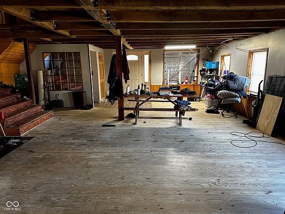This property is its own private oasis being sold AS IS and is waiting for your personal cosmetic touches to make it complete! The potential is unlimited when dreaming of what this home could become. Upon entering the home, you are welcomed with an exceptionally large living room allowing a great space for hosting or entertaining. In the living room on the main level there is a fireplace that runs from floor to ceiling throughout the center of the home opening up the ceilings. Having the split levels will allow for a more separated/private layout with 3 bedrooms on the third floor and the primary bedroom located in its own lofted area. A new roof and gutters were put on in 2024. Along with the house, the property also offers a fully stocked pond, approx. 6 acres for wildlife to roam, 30x20 carport, 40ft shipping container (9ft High, 8ft Wide). Approx. 10 mins to Spencer, 30 mins to Bloomington & 45 mins to Terre Haute.