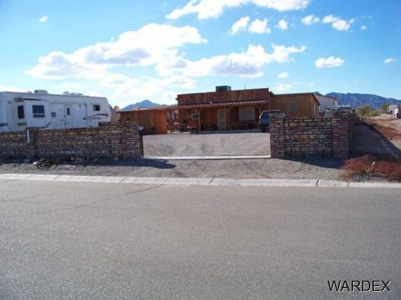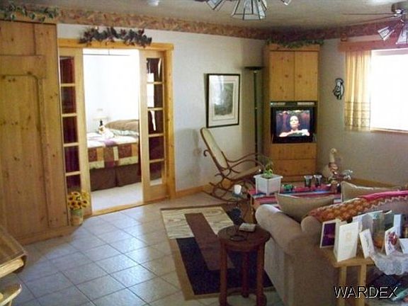 Site built . Unique 1 bed, 2 bath western style home in Rainbow Acres. This homes comes with custom cabinets, tile floors, ceiling fans, large living room and large laundry room/office. Home also has covered patios for relaxing in the shade. Lot has 4 sides fenced with colorful Mexican brick with 2 wrought iron gates, an 8x14 utility shed with electric, and 2 RV hook-ups.