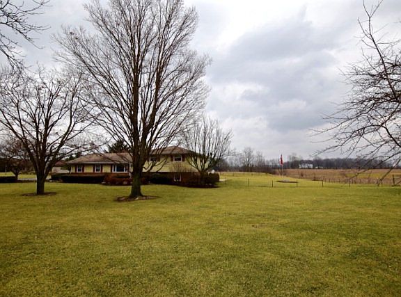 Lovely family home situated on over 5.5 acres, with a 3/4 acre stocked pond, a stream at the back with a wooden bridge leading to the additional acreage, black topped drive and hot tub. A 40' x 24' pole barn, insulated, 200 amp service, water and a place for a wood burner and two covered patios. The back barn is 26' x 18' with electric and aerator for the pond and a 12 x 6 chicken coop. The home has a very open floor plan with a well equipped kitchen, plus 4 large bedrooms, 2 full baths and 2 half baths. The lower level has a family room, play room and a large laundry room, all with Nature Stone flooring. Whole house generator and much more!