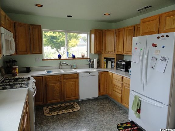 Home features updated kitchen & bath, vinyl windows, newer gas furnace & hot water, lots of other upgrades thru out the house. Large family room & living room, large formal dining room, has a den/office room off the living room, has an extra bonus room for shop space or 4th bedroom. Beautifully landscaped backyard with a covered patio for outdoor living. This home is the best deal in Keizer, not a drive by!