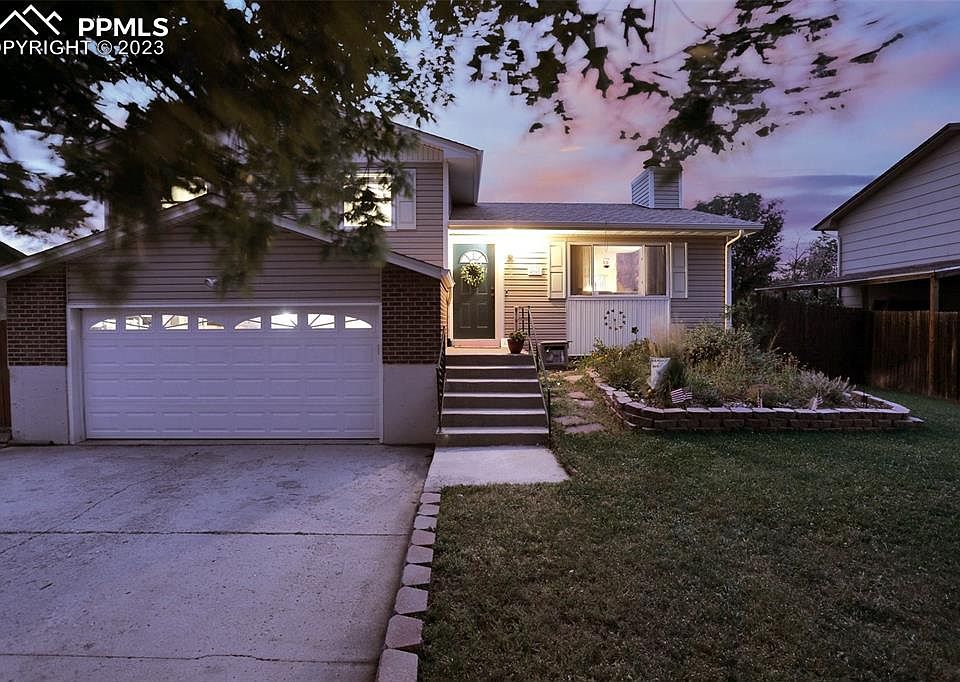 Stop your home search right now! Rare opportunity to own this fully updated tri-level property, boasting stunning curb appeal and a picturesque, serene backyard that is truly an escape from your daily stresses. This property shines with pride of ownership from top to bottom, and designer upgrades galore. As you walk up the front steps, enter into the cozy living room that features a gorgeous stone wood burning fireplace that is the focal point of the room. Continue into the formal dining room, complete with a updated chic light fixture. Walk out to the enviable covered deck with patio party lighting. Continue in to the designer kitchen, featuring upgraded granite counter tops, tile backsplash, and stainless steel appliances. Continue upstairs to find the mater retreat with an adjoining fully updated full bathroom, complete with designer tilework, 2 additional bedrooms and a half bathroom. Head downstairs to the lowest level to find a fourth bedroom, and laundry room 1/2 bath combo. A two car garage completes this picture perfect property. The backyard is beautifully landscaped, with mature trees and plenty of space to entertain, or just enjoy your own private oasis, complete with mountain views. The covered deck with lights and an added private side patio area with sun shade finish off this model home quality backyard. Conveniently located near military installations, with easy access to Powers Blvd and 1-25. Don't wait- schedule your showing today!