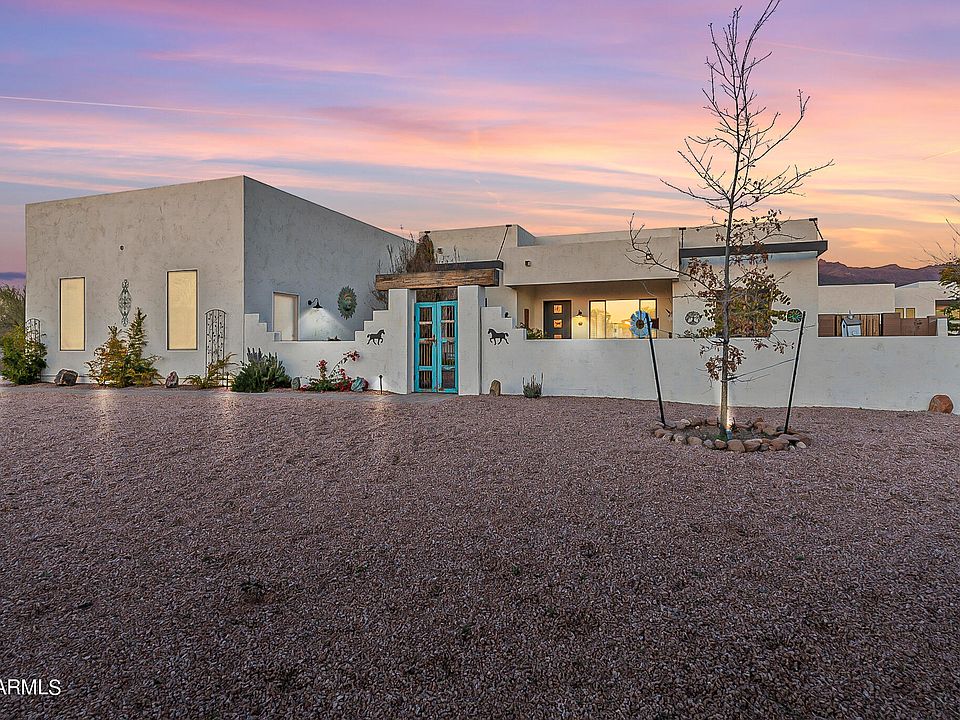 ONE OF A KIND HORSE PROPERTY! NEW CONSTRUCTION! Stunning Custom Home with brand new Courtyard (2022) and Horse Facility w/Corral, Turnout, Stalls, and Tack Room (2022). Property is fully Fenced (block), Front & Backyard Pavers, and Fully Landscaped (2021/2022). New Landscape Lighting (2022) and completed Circle Driveway to easily unload horses/animals and feed (2022). This Custom Home features a great room concept with SOARING ceilings and UNBEATABLE Superstition Mountain Views! This 4 bedroom, 2.5 bath property boasts a beautiful open kitchen, massive island, and over 2400 sqft of new construction! NO HOA and OVERSIZED 3 Car Garage. Full Horse Facility set-up and Custom made Chicken Coop on site. A true Arizona Dream Home!