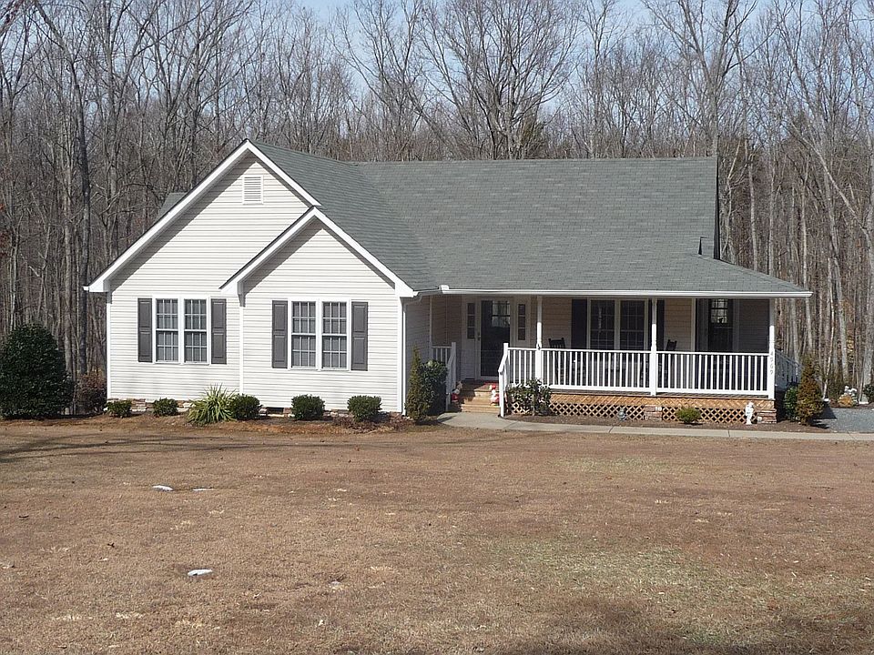 OPEN CONCEPT RANCH ON 4 ACRES! Unique design in this charming 3 bedroom 2 bath vinyl-sided ranch w/wrap-around porch on a landscaped 4-acre lot! Open vaulted living room w/gas fireplace, separate dining room with arched opening and spacious kitchen (with access to wrap porch) and w/pantry. Stainless Appliance package. This home featuring gorgeous bamboo floors and carpet in the bedrooms. Super master w/vaulted ceiling, tile bath w/soaking tub and separate shower, and generous walk-in closet. Over sized driveway/parking area lead to designed landscapes and hardscapes, and fenced area for pets or children at play. The 12 x 16 deck has custom horizontal metal rails and solar light caps....a must see! Under deck has maintenance free lattice and extra storage. The custom shed offers a neat roll-up door and electricity! Privacy, acreage and an immaculate home ready to move in!