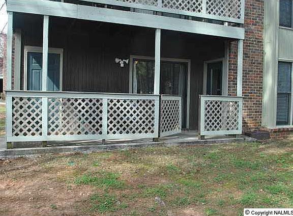 MOVE-IN READY! Crisp, clean, ground-floor unit minutes from UAH, Research Park and Redstone Arsenal. Many windows bring in plenty of natural light. Master overlooks patio and has HUGE walk-in closet. Relax on your 19x6 covered patio with access to courtyard with plenty of shade. 5x6 storage room off patio is large enough for your bicycles and much more. NEW RINNAI ON DEMAND water heater 2013, NEW HVAC 2013!!!