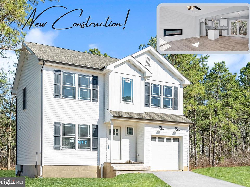 Trust the magic of new beginnings! CUSTOM built home w/ QUICK DELIVERY AVAILABLE! The two story foyer welcomes you into open floor living! The living room showcases an electric fireplace enclosed by a full wall of ship lab! Flowing into the kitchen and dining area, the kitchen includes granite countertops, center island w/ breakfast bar & SS dishwasher, stove & stove hood! The dining area includes sliding glass doors out to the private backyard. You will also find a sliding farmhouse style door which allows separation of the 1/2 bath, laundry area & garage access from the main living space! Recessed lighting & vinyl flooring throughout! The second floor includes the owners suite showcasing cathedral ceilings, large WIC & full en-suite bath w/ tiled shower stall! Two more bedrooms and full bath equipped w/ a tub shower complete the second floor. This home comes equipped w/ an attached garage, upgraded concrete driveway, attic storage, public water & septic system. Being centrally located, this home is close to RT 9, GSP, restaurants, shopping & more! Just unpack into this brand new home. Make it yours! Call to see it today! *Grass and driveway have been digitally altered*