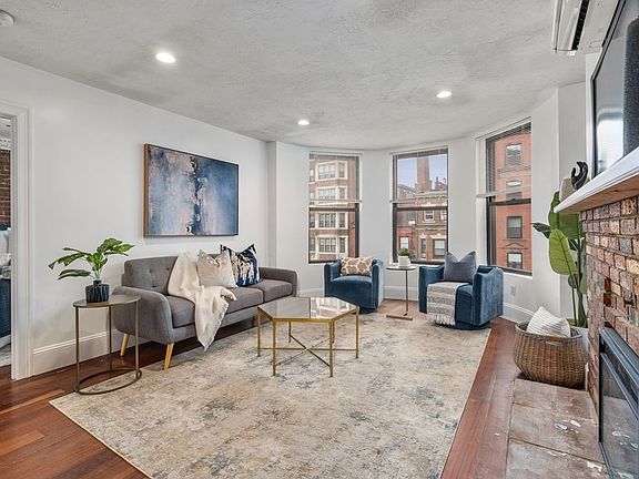 Quintessential Back Bay Brownstone front facing one bedroom in a prime location. This unit make a perfect starter condo, pied a terre, or investment unit. The open and sunny layout features a gracious bowed window, dentil molding, fireplace and hardwood floors throughout. The kitchen has granite countertops, stainless steel appliances and a large breakfast bar open to the living area. The bedroom is accented with traditional 1900's exposed brick on one wall and hidden in the large double closet is in unit laundry. The unit is freshly painted and Ductless central HVAC, subway tiled bath, low condo fee and professional management. 1 block from the Charles River and close proximity to Newbury Street and Kenmore Sq., MIT, BU, Hynes, Copley, and all that Back Bay, Fenway, and Cambridge have to offer.