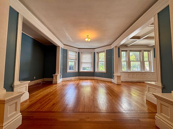 Beautiful one of kind a Back Bay style brownstone with approximately 2,500sf of living space on the 1st floor, steps to the Brookline Reservoir. Property features include 10 rooms with a warm welcoming foyer, formal dining room with coffered ceiling, living room, family room with working fire place, 4 bedrooms, kitchen with butlers pantry, 2 full baths, 4 season sunroom and laundry in unit. Finishes include period details with dramatic 12ft ceilings with crown moldings throughout, hardwood flooring. This unit includes 2 off street parking spaces. Located in Brookline Hills near Washington Sq. and Brookline Village, the property resides in the Runkle School District. It's a short walk to the D line, Brookline High as well as public transportation to Longwood hospitals.