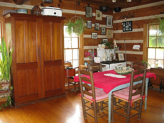 Beautiful log home with hand hewn logs with exposed beams. 1st floor open floor plan with free standing propane stove. Wood floors. Master bedroom includes jetted tub. Pole barn 24x48. Big enough for 4 vehicles. Front porch and back deck. Garden. Stocked pond with fountain. Also water hooked up to pond and electric ran to pond. New stain in 2010. 2 wells. 2 paved driveways. Very. Very private. 5 ceiling fans. Neighborhood Description Rural neighborhood. Peaceful and quiet, but only 10 minutes from Interstate 75. Making it convenient to Charleston, Calhoun, Athens and Cleveland.