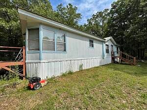 This is a gorgeous manufactured home located in the Berryville Arkansas School District. It boasts three bedrooms, two bathrooms, and sits on six sprawling acres of stunning land. The home comes fully equipped with a variety of appliances, including a refrigerator, dishwasher, microwave, and more, as seen in the accompanying pictures.