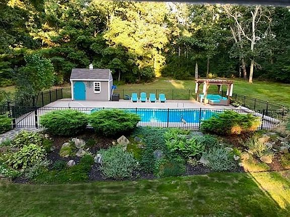 Custom built Colonial situated on a private 2+ acre lot features 4 bedrooms, 3.5 baths and an additional half bath located in the pool house. The manicured grounds comes equipped with a in-ground pool, hot tub, pool house, outdoor shower, two firepits, and pergola. The kitchen boasts custom cabinetry, an eat-in island, premium silestone countertops, stainless steel appliances and a formal dining room. The spacious living room displays an exposed whitewash fireplace that flows into the vaulted family room. Above the over-sized garage is additional living space with a possible in-law setup or an ultimate man-cave. The first and second floor has hardwood flooring throughout. This home has been beautifully maintained and features many upgrades; brand new septic system (to be installed prior to closing), surround sound (1st floor), 200 amp service, gutter guard system, exterior painted in 2017, a 6 year young roof, and invisible fence.