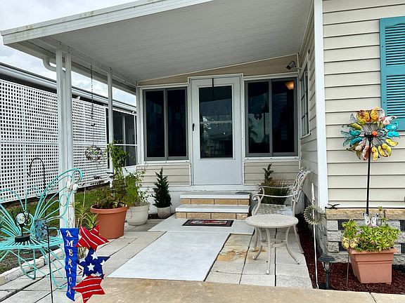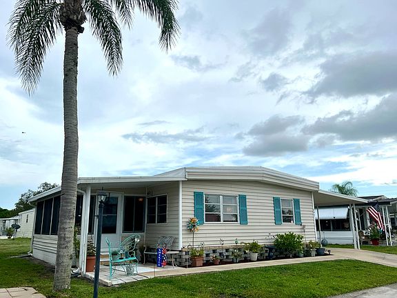 This is a mobile home for sale in a 55+ community on a rented/leased lot. 497 Driftwood Lane located in Colony Cove South Side, a 55+, pet friendly community on a rented/leased lot. 1128 SQ FT! This is a 2BR/2BA mobile home with an air conditioned side set Florida Room and screened carport lanai for watching the world go by! It is located on the south side of Colony Cove on a low traffic side street within walking distance to Manatee Pool and Hall. It comes partially furnished including turnkey supplies. Basic items needed to spend your first night! The galley kitchen has new IKEA soft close cabinets and real butcher-block counter tops. There is an open bowl pot sink and nice faucets plus a pantry. The living room and formal dining area are adjacent to the kitchen. The dining room has a custom built-in cabinet with glass front doors where you can display your treasured items plus extra storage. The generous living room is also waterproof laminate with plenty of natural light. The sliding glass door leads you to the Florida room (12 x 14) that has new windows and a private entrance. Just outside the entrance door is a cozy spot to sit outdoors. This Florida Room can be used for a guest bedroom, office or hobby room or just an extra living space! Just down the hall way is the large owners bedroom suite (21 x 20) that has all new windows. King size furniture is not a problem! There Is a ceiling fan and a large closet. The ensuite bath has a single sink upgraded vanity and lighting. There is a separate room with the walk in shower and commode. The guest bedroom (7 x 8) has laminate, a closet and panel walls. A twin or day bed would fit perfectly. Just across the hall is the remodeled guest bathroom. It has a step-in all ceramic shower, trendy vanity and lighting. The driveway is 28 x 12 and will house 2 small cars tandem style. The screen carport lanai (12 x 20) has a double door opening where a golf cart could be stored. Attached is a 9 x 9 shed for storage and washer/dryer hookups (washer/dryer included). Do not forget all the recent updates: 2021 Membrane roof with transferable warranty and a new hot water heater. The 2017 HVAC keeps everything cool and you will love the waterproof laminate throughout! The lot rent includes water, sewer, trash, lawn mowing and the amenities as outlined below. Colony Cove has been named 'Best Retirement Community' six years in a row by the Herald-Tribune of Bradenton. Colony Cove 55+ retirement mobile home community has a wealth of amenities designed to keep up with your active lifestyle. Located in Ellenton, FL, just inside the Sarasota/Bradenton metro area, the Colony Cove community features beautiful banquet rooms, billiard facilities, a private boat dock, and five spacious clubhouses. Great fishing opportunities, huge game rooms and well stocked libraries are also great diversions. Take a dip in one of the six heated swimming pools, or challenge your friends and neighbors to a friendly match on the shuffleboard, pickle ball or tennis courts. Colony Cove also offers on-site management, laundry facilities, a woodworking shop, two fitness centers and a dog park to make your active lifestyle more enjoyable. Florida MH Sales, LLC cannot guarantee or warrant the accuracy of this information, measurements or condition of any property. Measurements are approximate. All homes are sold "as is" and personal or professional inspection is encouraged. Lot rent is set by the community and is subject to change.