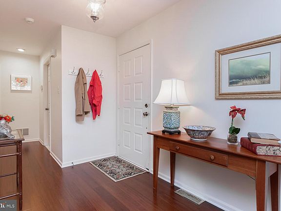 Welcome home to 497 Eaton Way, Hershey's Mill! This 2 bedroom, 2 full bathroom end unit is totally renovated and highly stylized. It needs to be seen to be believed! This home is beautifully appointed from its gleaming new bamboo hardwood floors throughout the entire home to its classic moldings and trim. The living room & dining room are one large expansive space with wood burning fireplace and sliders that open to a newly stained deck, a tranquil space to enjoy a glass of wine or morning coffee. The eat-in kitchen features custom painted white cabinetry, Corian counter-tops, neutral back-splash, pantry and newer washer & dryer. The light infused, warm and inviting living room and dining room has been newly painted and offers a wood burning fireplace, a fantastic space for entertaining guests and family. The 2 first floor full bathrooms have been totally updated, with gorgeous high-end finishes. The master suite can easily accommodate a king size bed, additionally it offers a lighted walk-in closet and luxurious en-suite master bathroom with walk-in shower. There is a one car garage with garage door for additional storage. This home has a newer HVAC system. The full basement is newly carpeted, and can add additional space for storage, and/or an additional 1,400 sq ft of living space. Easy to finish as electric outlets and lighting have already been installed. HOA fee includes exterior maintenance, common area maintenance, snow removal, trash, sewer and preferred Verizon Fios HD cable, internet, and phone (additional upgrades may apply). Eaton Village also comes complete with it's own private pool just steps away from your front door. There is also a larger community pool, tennis courts, wood shop, access and use of the Sullivan house and beautiful community center, walking trails and gated access to the community manned with 24 hr security. The country club offers a beautiful 18 hole golf course that winds through the community and can be joined at the new owners discretion. The community is convenient to shopping, transportation and major thorough fares making Hershey's Mill extremely accessible everywhere you would want to be. Showings will begin on Sunday, July 28 ALL OFFERS WILL BE REVIEWED WEDNESDAY, July 31at 5 PM