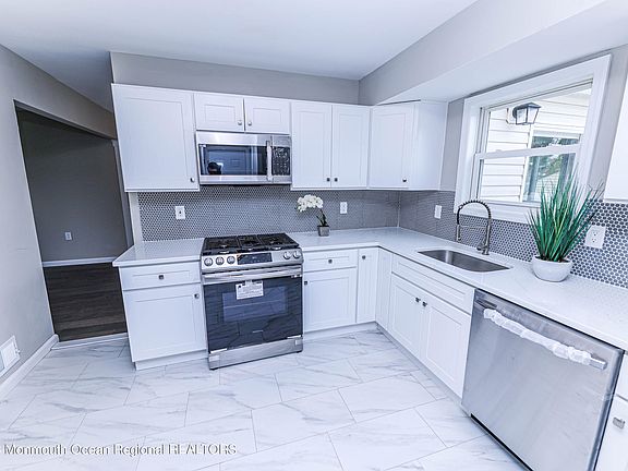 Turn-Key Condition! Newly Renovated 3 Bedrooms 1.5 Bath charming house. Beautiful Brand new kitchen with breakfast area, granite counters and new SS appliances. Inviting Living with skylights and sliding door to a private backyard with a wooden deck. Formal Dinning room, good size bedrooms, brand new elegant bathrooms with a quality fixtures. One car garage. Two Driveways from both sides of the house. Close to major transportation routes, shopping, fine dinning and wonderful NJ Shore beaches. Owner is NJ licensed real estate salesperson.