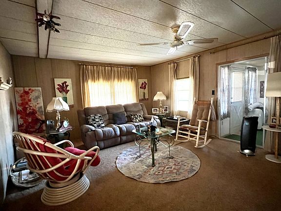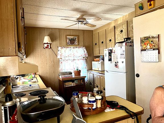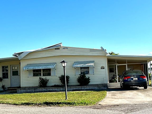 497 Marlin Lane located in Colony Cove South Side, Age qualified 55+, pet & golf cart friendly community. Homes are on leased lots. Community application for residency is required (credit & background check). Application fee is non-refundable. HANDYMAN SPECIAL at only $19,900! The roof over was damaged in hurricane Ian but the roof under seems to still be water tight with only one small ceiling stain. The community allows 90 days to bring the home into compliance with community standards. This is a 2BR/2BA mobile home with a side set Florida Room with auxiliary AC plus a screened carport lanai for watching the world go by! It is located on the south side of Colony Cove on a low traffic corner side street just steps away from Manatee Pool and Hall. It is offered furnished including turnkey supplies of linens & kitchenware. 2020: New HVAC system was installed. The galley kitchen has plenty of cabinets and three pantries! There is a range, refrigerator and dishwasher plus a ceiling fan & vinyl floor. The carpeted living room and formal dining area are adjacent to the kitchen. The sliding glass door from the living room leads you to the Florida room (10 x 16) that has glass windows and a private entrance. Just outside the entrance door is a cozy spot to sit outdoors. This Florida Room can be used for a guest bedroom, home office, hobby room or just an extra living space! Just down the hall way is the large primary owners carpeted bedroom suite (21 x 20). King size furniture is not a problem! There Is a ceiling fan and a large wall closet. The ensuite bath has a single sink vanity. There is a separate room with a walk in shower and commode with linoleum floors. The carpeted guest bedroom (8 x 8) has a closet, ceiling fan and panel walls. Just across the hall is the guest bathroom. It has shower/tub combo with glass doors & linoleum floors. The driveway will house 2 cars tandem style. The screen carport lanai (12 x 16) faces the large corner lot. Attached is a 9 x 9 shed for storage and washer/dryer hookups (washer/dryer included). The lot rent of approx $991 includes water, sewer, trash, lawn mowing and the amenities as outlined in the community advertising. The buyer assumes full responsibility for obtaining all current rate of lot rent fees and pass-on costs. Lot rent is set by the community and is subject to change. The buyer is responsible for obtaining all rules, regulations, pet policies, etc., associated with the park from the community administrative office. Florida MH Sales, LLC is not responsible for quoting of fees or policies. Colony Cove has been named 'Best Retirement Community' six years in a row by the Herald-Tribune of Bradenton. Colony Cove 55+ retirement mobile home community has a wealth of amenities designed to keep up with your active lifestyle. Located in Ellenton, FL, just inside the Sarasota/Bradenton metro area, the Colony Cove community features beautiful banquet rooms, billiard facilities, a private boat dock, and five spacious clubhouses. Great fishing opportunities, huge game rooms and well stocked libraries are also great diversions. Take a dip in one of the six heated swimming pools, or challenge your friends and neighbors to a friendly match on the shuffleboard, pickle ball or tennis courts. Colony Cove also offers on-site management, laundry facilities, a woodworking shop, two fitness centers and a dog park to make your active lifestyle more enjoyable. Florida MH Sales, LLC cannot guarantee or warrant the accuracy of this information, measurements or condition of any property. Measurements are approximate. All homes are sold AS IS and personal or professional inspection is encouraged.