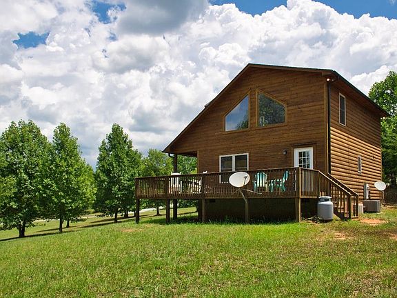 This log-sided cabin located in the foothills of western North Carolina is sitting on gently sloping land. A two bed/two bath home, it features a vaulted ceiling living area with a beautiful stacked stone fireplace, and the generous covered porch wraps around to a large deck Built on Lot 196 in 2015, the log siding on this cabin makes a nice, warm statement. While it enjoys an appearance similar to full logs, it was conventionally built, which offers better insulation in the exterior walls. A short, gravel driveway takes up little of the land, leaving a good deal of usable acreage on this corner lot in Phase Seven of Hearthstone Ridge, just north of Rutherfordton, NC. As you walk inside, you'll notice this cabin features a 'three-quarter' loft taking up three-quarters of the home's footprint. This is where you'll find the second bedroom, the second full bath and enough extra space left over for a pool table, an office, or just space to hang out. The next thing you'll probably notice is the floor-to-ceiling stacked stone fireplace... just the thing for cool, cozy nights in this four-season climate! The stairs to the loft are just left of the front door, straight ahead is the kitchen/dining area, with a side door leading to the deck - perfect for your grill! Oak hardwood flooring is installed throughout the first level of this cabin, with tongue & groove pine used on the second level floor. Ceramic tile is used in the two baths, the lower bath being large enough to also contain the laundry hookups. The light restrictions allow for grazing animals - this property would work nicely for your horse (or llama)! There's plenty of room for a four-legged friend and a barn if you like. Although the trees on this parcel are growing, there's still a mountain view from the large loft windows in late fall, lasting throughout the winter. Being located in the foothills offers easy, practical living - this one's just a twelve-minute drive into town. Hearthstone Ridge is quiet - five and a half miles north of the county seat of Rutherfordton - and with low dues of only $435/yr, the gated community offers security and peace of mind. There's so much convenience, ease of access, clean air and water... all waiting for you!