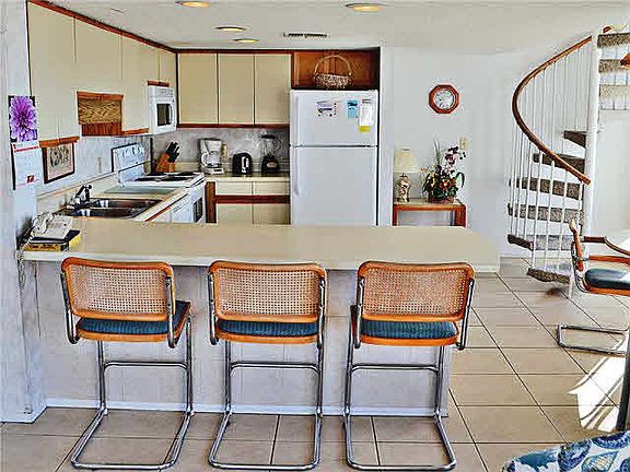 BACK ON THE MARKET!! Incredible GULF FRONT three bedroom condo offers an AWESOME GULF VIEW. Ceramic tile floors in the living area and kitchen and a NEW water heater! There are updated kitchen appliances, a queen bed in the downstairs master bedroom, twin beds in the guest and king bed and queen sleeper sofa in the upstairs bedroom. It also has a ceiling fan in the living area and the upstairs. There is a 27 TV/DVD in the living area, 20 TV in the downstairs master bedroom, 13 TV/DVD in the guest bedroom and 19 TV/VCR in the upstairs bedroom. This spacious, third floor unit is located near various pools, the hot tub and the boardwalk to the beach. And it is GULF FRONT with an amazing GULF VIEW!!