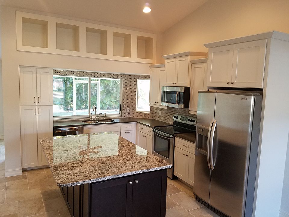 New kitchen cabinets with granite and Quartz countertops, marble backsplash with pass through window to lanai. New tile showers and vanities with granite in both bathrooms and all new fixtures. New tile flooring and carpet, paint and lighting throughout. Large master bedroom with tray ceiling and walk-in closet. Two 11x12 bedrooms on other side of house. Open concept inside and nice private yard on a wonderful street. It's a must see in this highly desirable neighborhood.