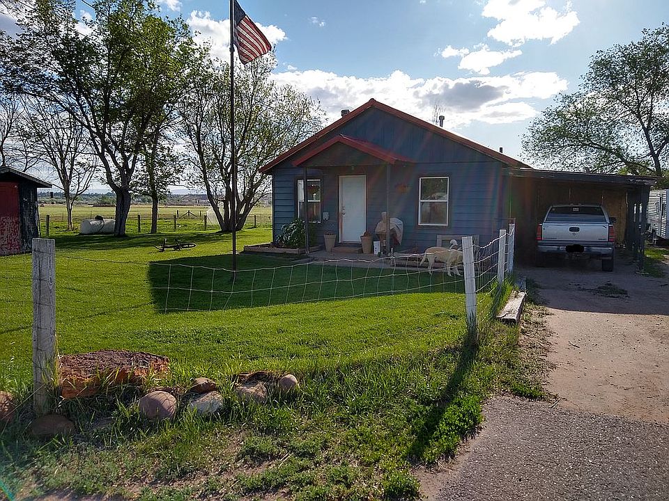 2 Bedroom, 1 bath starter home located on 1.01 acre of land. House has a metal roof with attached carport, central air heating and cooling, wood stove and storage room. Range/oven, refrigerator, and dishwasher included with sale. Culinary water for the house, artesian well for the yard and pasture. Large driveway with room for trailers. Large, fenced yard with mature trees including fruit trees (mulberry, apricot, and apple), play area with a fort and swing set, and fire pit great for outdoor roasting. Fenced pasture, dog kennel, chicken coop, large garden area, detached metal garage/shop with cement floor.