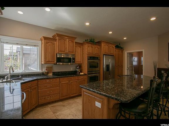 REDUCED 50K! Beautifully Maintained, Immaculate Home with Million Dollar Views of the Valley! Gleaming Travertine Floors Welcome You into an Open Two Story Entry with a Lovely Formal Living Room! The Private Office off the Entry also has access from the Spacious, Vaulted Master Bedroom with a Romantic Gas Fireplace and Sitting Area to enjoy the Gorgeous View! Cuddle up and watch Spectacular Sunsets from your Private Deck off the Master Bedroom! The Master Bathroom boasts His and Her Closets, Separate Vanities, Luxurious Jetted Tub and Beautiful Travertine Floors & Tile in the Extra Large Shower! The Two Story Family Room features a Cozy Gas Fireplace and Upper Windows to bring in Lots of Natural Light! You'll love the Spacious Kitchen with a long Island, Tons of Cabinets, Stainless Steel Appliances including Double Wall Ovens! A Generous Dining Area with a Bay Window walks out to the Covered Patio that is always Shady, Quiet and Inviting (and wired for a Hot Tub)! The Perfect Place to host your next BBQ! Laundry on the Main and in the Basement! Tons of Lockers in the Mud Room! Upstairs Boasts Three Bedrooms with Walk-in Closets (one of which has its own Bathroom), a Jack and Jill Bathroom, and Loft Area! The Basement features a Great Family Room with Pool Table and Game Area, Nice Gym (could also be a bedroom), Bedroom with Walk-in Closet, Full Bath, Wet Bar, Large Storage Room, and Office/Craft Room! This can also be a Handi-cap accessible MIL Apartment with entrance from the Garage Side Door! Oversized Garage is HUGE! The Backyard was Designed for FUN! The Upper level has a Trampoline Pit and has hosted many a Football, Volleyball, and Badmitton Game! Also, the South side slope was designed for a Snow Sledding Hill and the North slope designed for a Summer Waterslide Hill! Unobstructed Views will ALWAYS be Enjoyed, as there is a city Park and Trailhead across the street! Come See This Beautiful One Owner Home and You Will Fall In Love!! 10 Mins to SLC and 15 to