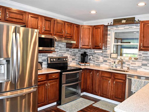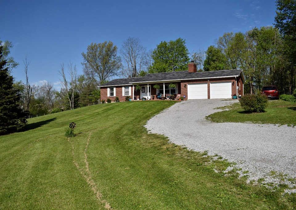 Solid brick ranch with loads of updates! New SS appliances, quartz counters, added crown molding, new floors throughout, freshly painted. Features include a fireplace, walkout basement, firepit & private setting with 1.8 acres with public utilities! This home is Move In Ready!