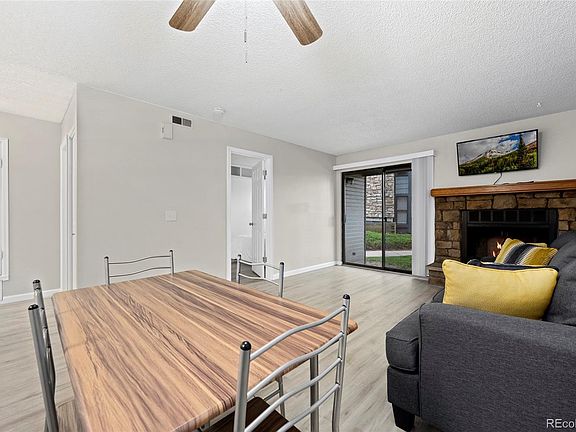 PRICE IMPROVEMENT! This home includes washer/dryer, spacious and remodeled kitchen, open layout and light throughout. Recently remodeled 1 bedroom condo in a great location with a garden level front entry door with direct ground level access out of the patio door. Entering the front door the open and bright floor plan is ideal for everyday living, including newer features like laminate floors, updated bathroom, new paint, newer furnace, stainless steel refrigerator, dishwasher, a newer stove. The primary bedroom suite includes a large walk-in closet that provides access to the full bathroom. The kitchen is open to the living room through an open eat-in bar with updated cabinets, doors, lighting, stainless steel finishes on all kitchen appliances.. The living room showcases a beautiful wood-burning fireplace and provides access to a back patio, which leads to green space with pet-stations, outdoor pool and tennis/basketball courts, and mail kiosk. An additional storage closet with workbench is right next to the front door and easy access parking just a few steps away. Convenient location to grocery stores, library, schools, restaurants, parks and trails, Aurora City Center and RTD Light Rail station. Special Financing Programs Available - Ask your mortgage lender about CITY OF AURORA - HOME OWNERSHIP ASSISTANCE PROGRAM and CHFA DOWNPAYMENT GRANT PROGRAMS.