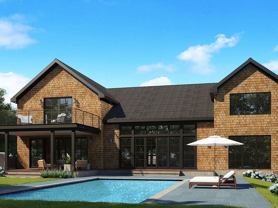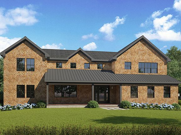 Exciting new construction slated for early 2022 completion in Sagaponack North. This Classic shingle-style modern farmhouse will have the layout every buyer is looking for with an impressive vaulted great room with living, dining, and kitchen areas all with sliders to the patio and pool. 4,500 sq ft of living space above ground offering 5 en-suite bedrooms including 2 master suites, and 2 half baths. A finishable lower level could add additional living and bedrooms ready to finish as desired.The chef's designed kitchen has a large center island with a bar sink, adjacent pantry, and all professional-grade appliances. A covered alfresco dining area off the kitchen holds a built-in barbeque with prep space and cabinetry. The first-floor master suite has double closets and sliders to the garden. Also on the ground floor is a den/media room, and 2 powder rooms, one in the foyer and one located at a side mudroom for easy access from the pool. There is a washer-dryer here in the mudroom as well.Upstairs are 4 luxurious suites with a landing bridge connecting the two wings looking down into the great room below. Off the second-story master is a private sunning deck with views over the pool and patio. A full laundry room is conveniently located on this floor.Among the many amenities are a 20 x 40 ft Gunite heated pool and patio surround, a 2-car garage, and a wonderful covered front porch. Centrally located just south of Sag Harbor Village on a flat shy acre parcel with reserve land behind and plenty of clearing allowance to allow for a large sunny backyard.