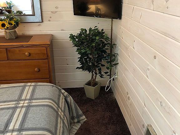 Vaulted ceilings. Bamboo flooring. All knotty pine on walls and ceilings. Double pane vinyl windows and red cedar shakes. Detached 14'x24' garage. Cabin is 720 sq ft