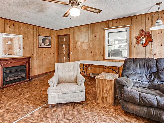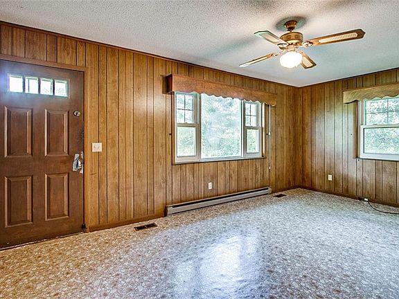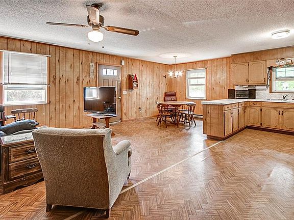 Brick ranch on 18+ acres! This 2 bedroom, 1 bath ranch has metal roof in 2010, replacement windows & new hot water heater. Living room has free standing fireplace w/gas logs opens to kitchen w/dining area & appliances remaining, including refrigerator. 32 x 24 workshop/garage with concrete floors, 220 breaker box, water & built-in work benches, two additional attached sheds & old smokehouse. Nice acreage with creek at the back. Selling home as-is.