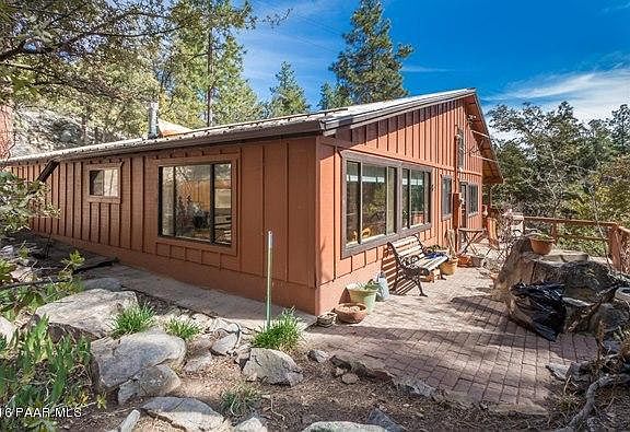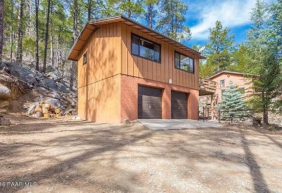 TREE HOUSE LIVING! So many amazing features! Soak in the Ponderosa Pines from sunny patio or covered deck. Detached garage and Guest House. Main house is one bedroom and one full bath, all remodeled in 2010! Upstairs is a loft bedroom. T&G Pine Ceilings, High Ceilings, wood floors, Welcoming Foyer, South-facing walls of windows both Living Room and Kitchen. Amazing kitchen with updated tile floors, maple hardwood cabinets, large pantry, and dine-in kitchen setup. Large Master Bedroom with large walk-in closet. All the amenities you will need--even a Guest House for family and friends. A true getaway! Boulders, trees, sunshine, quiet and peaceful. Guest House has large deck. Fenced lot, large two car garage, storage shed. Metal roofing.