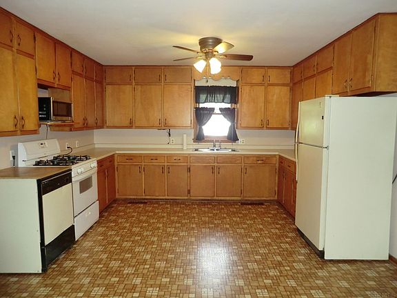 3 Bedroom and 2 Bath home, sits on a corner lot with lots of shade. Very large eat in Kitchen with big Dinning Room. 1 Bedroom and Bath on main level. 2 Bedrooms with walk in closets, one bedroom has a built in desk, Bathroom upstairs. House has an whole house fan upstairs. Basement has entry from inside and stairs leading outside. Plenty of shade trees and fruit trees. Attached garage on home and detached garage(Steel Span) with a car port which is set up as workshop that has a furnace.