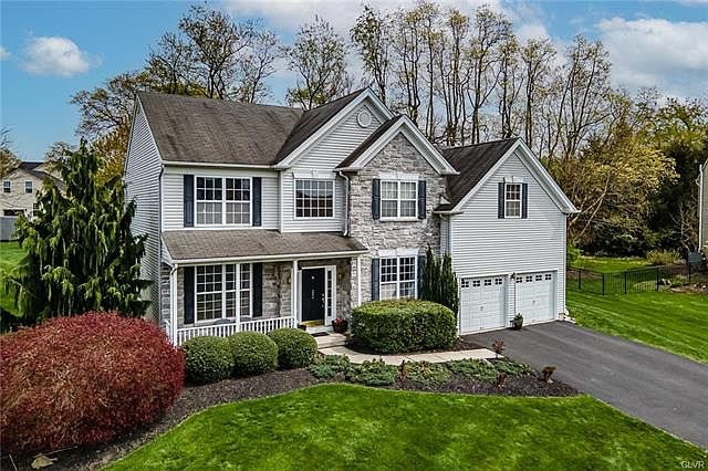 Showings Begin Saturday morning at 9am. Open House Saturday from NOON to 2:00. Stunning 4 bedroom home set in the heart of Center Valley and Southern Lehigh School District is now for sale. Set on a cul de sac, this colonial boasts over 3,600 sq ft of living space with 3 bathrooms, a brand new finished basement and private office. Other amenities include gas heat, central air, two car garage, a master suite showcasing over 300 square feet w/ 3 closets (2 walk ins). Walking distance to the elementary school and Hopewell Park and minutes from the Saucon Valley Promenade Shops, Rail Trail, Route 78, Route 309 and PA Turnpike, this neighborhood and home are ideal for so many.... This home is eligible for 100% Financing through USDA or the VA. Taxes are under $7,500 annually. No HOA.