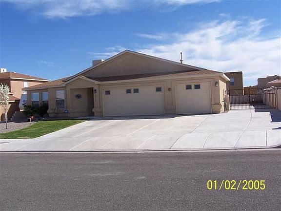 This Lovely 4 bedroom is designed with the comfort in mind! Meticulously maintained the home has an entry leads to a formal dining area then through arches to the vaulted ceiling great room with gas log fireplace and bright country kitchen. Patio doors off of the breakfast area lead to the large fully landscaped yard with Sandia mountain views! Past the kitchen is the Laundry room and pantry area that leads to the large 3 car garage On the other side of the great room is the Large 19 by 17 ft master bedroom and full bath. To the left of the entry is a short hallway leading to bedrooms 2,3 &4 as well as a full bath. To the right of the garage is a large pad for the RV within the yard gate. This home is located in the enchanted hills area of Rio Rancho close to shopping and great schools! This home is available for sale at $239,900