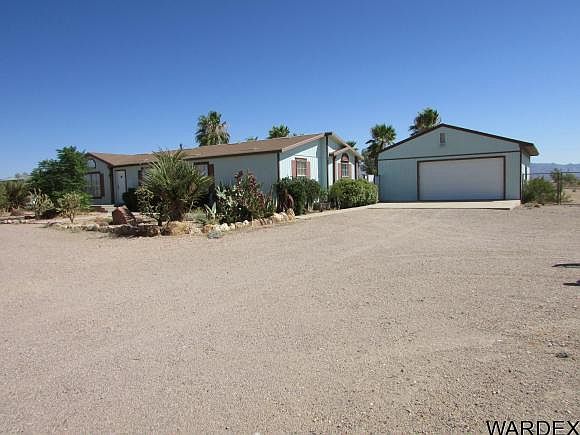 Spacious, peaceful, 1+ acre rural high desert lifestyle, with forever views, PAVED ROAD AND CITY WATER! Home has 2x6 walls, dual pane windows, new energy efficient 14 Seer a/c condenser unit. Large living areas w/vaulted ceiling, kitchen with island and eat-in nook, formal dining or den, PLUS Huge full length family/AZ room w/wet bar, evaporative cooler, and fireplace. Roomy 8x13 master bathroom. Large 9x8 in-house laundry area w/sink, folding counter, and cabinets, plus seperate room for freezer or huge walk-in pantry. Oversize garage w/8' door and new opener, also a full bath, work bench, and table saw included! Some recent upgrades to home flooring, roof, and irrigation. Mature low maintenence landscaping, fruit trees and grapevines, automatic irrigation system. Bonus- underground water storage tank w/pump and pressure tank! Very liveable, just needs a new owners personal touch. Nice homes nearby. Golden Valley is growing with new conveniences following this growth. The big improvements are already in this property, THIS IS A GREAT BUY FOR RURAL LIVING, and on paved road with community water service! Sellers have already relocated, make this your high desert lifestyle home now!