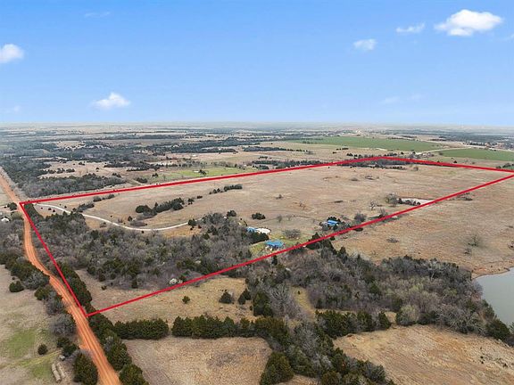 Here is your chance to own 51 acres with a pond and cabin, just minutes from I-35 and Hwy 33 intersection. The house was moved to site in 2015 and completely remodeled inside and out. Updates include new electrical, plumbing, tankless water heater, windows, kitchen appliances and much more. Sprinkler system around the house helps maintain the fescue grass. Perfect property to develop or run livestock. The pond is a short walk from the cabin and has a gazebo for relaxing in the shade. A small creek runs along the back of the house with lots of wildlife to see. Plenty of outside storage for yard tools and equipment. The whole property is fenced and includes an automatic gate at the entrance. Come take a look you won't be disappointed