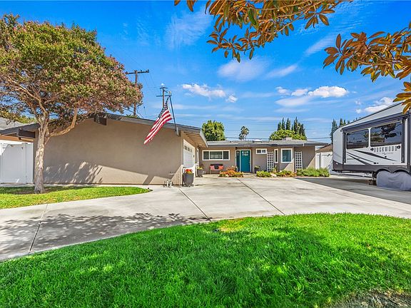 Charming single level, fully remodeled home, features 3 spacious bedrooms, 2 fully remodeled bathrooms with custom tiles, new fixtures and lighting, a craft/hobby room, separate laundry room, open floor plan with a cozy family room with a fireplace and flat screen TV, ideal layout for entertaining. A chef's kitchen with custom stained cabinets, gorgeous Quarts counter tops, glass subway backsplash, matching stainless steel appliances, including a separate wine/beverage fridge and luxury vinyl flooring through out. This charming home with it's welcoming pastel front door and well manicured front landscaping and a horseshoe driveway and side parking that can easily accommodate up to a 45' RV (plumbed with dump station and 50 amp power and easy access to water hook ups) along with the 2 car garage, there is additional parking for a boat or other fun toys. Prime location for biking or walking to top rated schools and within the desirable Los Coyotes Country Club neighborhood. Newer vinyl fencing surrounds the whole perimeter of the property, the backyard features a built-in gazebo covered patio perfect for BBQing for the best in Southern CA living.