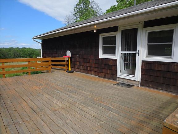 Come See this Beautiful bright Ranch with an open floor plan on nearly 6 open gorgeous acres in the rolling hills of south Owego. Walks into a cute 3 season/mud room and floor was raised to finish the bonus room with added laundry hookups for easy one floor living! New Kitchen with stainless appliances, new tiled bathroom, tons of closet space. Wood insert in fireplace heats house well on those cold snowy days and the open deck out to the above ground pool, expansive grounds and woods makes for fun in the sun! Bedrooms are all good size, pantry and half bath in bonus room. Huge basement is partially finished with lots of room to finish more or keep workshops and storage space. Fruit Cellar for food storage with shelves and 2 cedar closets, new garage doors
