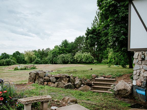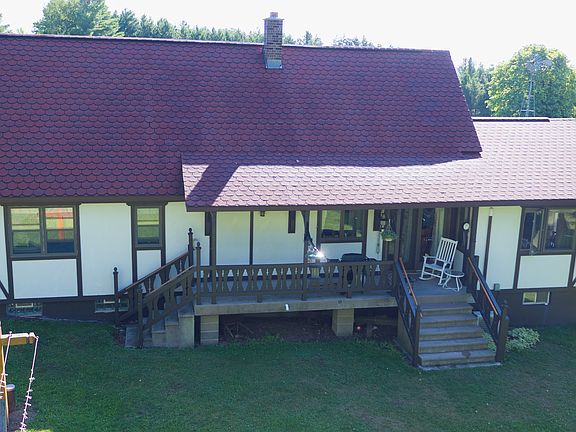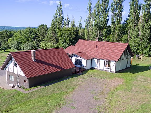 Beautiful Tudor style home set high on the hillside for a spectacular view of Portage Lake and the rolling landscape. Entering right into the heart of this home you will find an open concept to the family, living and kitchen. First floor also offers a laundry, bath and bedroom. Second floor has an office, 3 more bedrooms and bath. The basement is partially finished. A walk out room in the basement has in floor heat, and the detached garage has 2 plus stalls for cars, work space and an outdoor wood boiler. A nice sauna is located off the back side of the garage. Upstairs of the garage has a heated 4 season guest room with a bath and kitchenette. Behind the garage there is a 5 bay wood shed that holds approximately 6 cords of wood per bay, or toys/equipment. All this on approx 15 acres of property, within 5 miles of Houghton/Hancock!